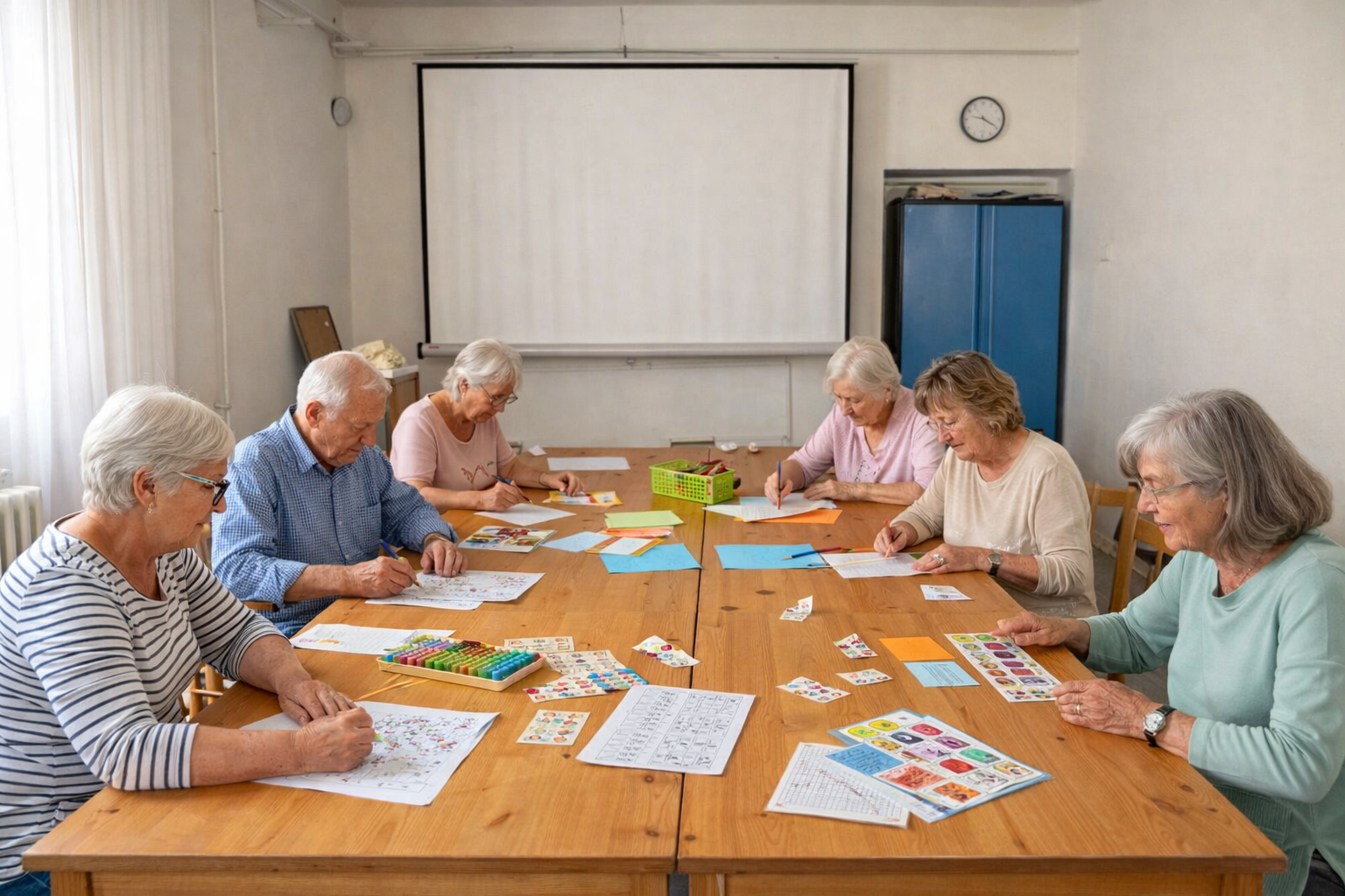 Pravidelné setkání zaměřené na procvičování mozku a mentální kondice.